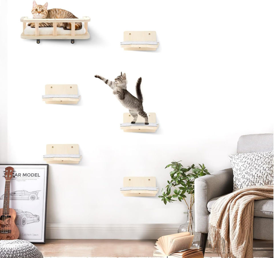 Bedroom Kindergarten School or Farmhouse Wooden Cat Climbing Shelf Wall Furniture for Cat Owners