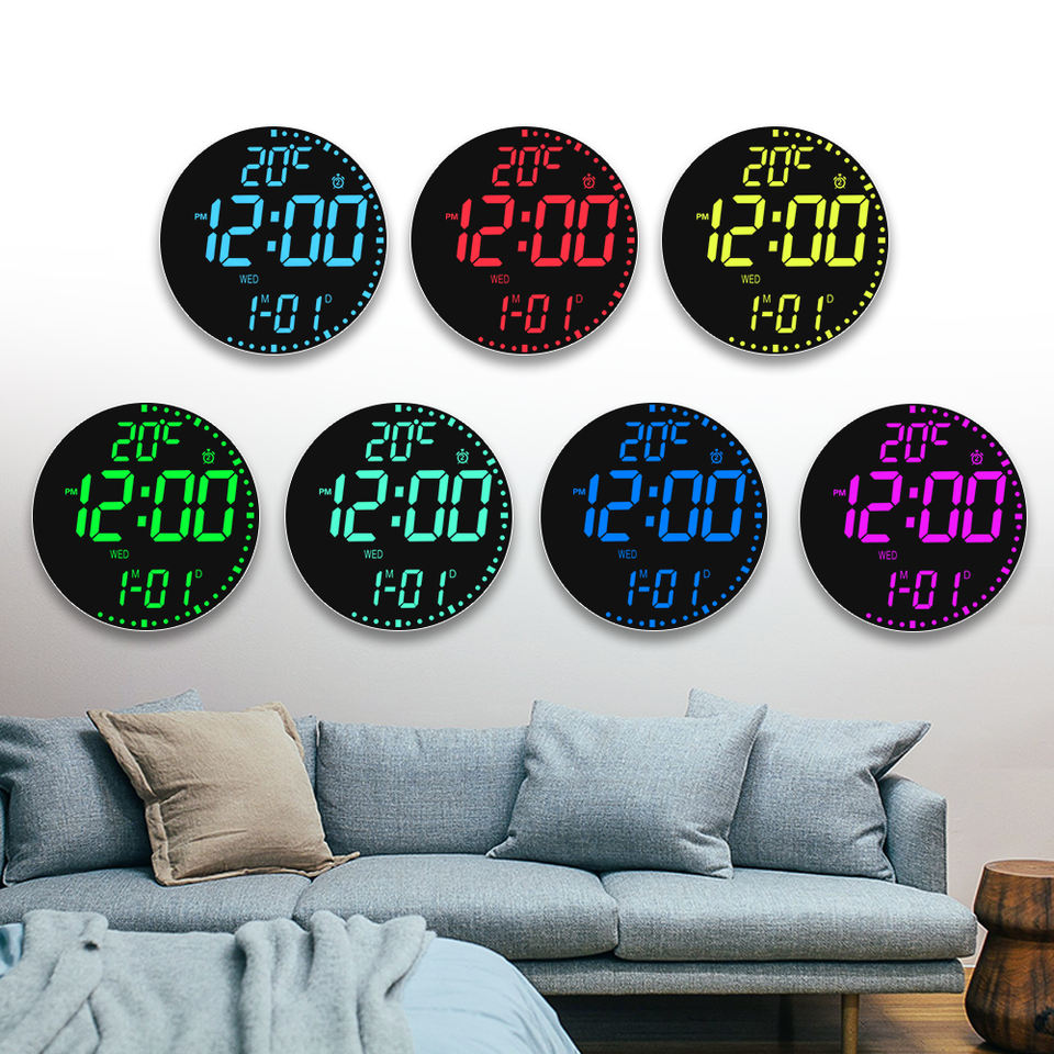 Nom:Horloge murale électronique ronde à affichage LED numérique avec compte à rebours