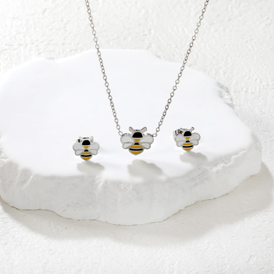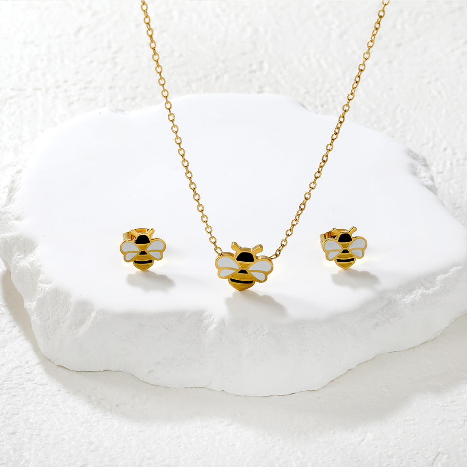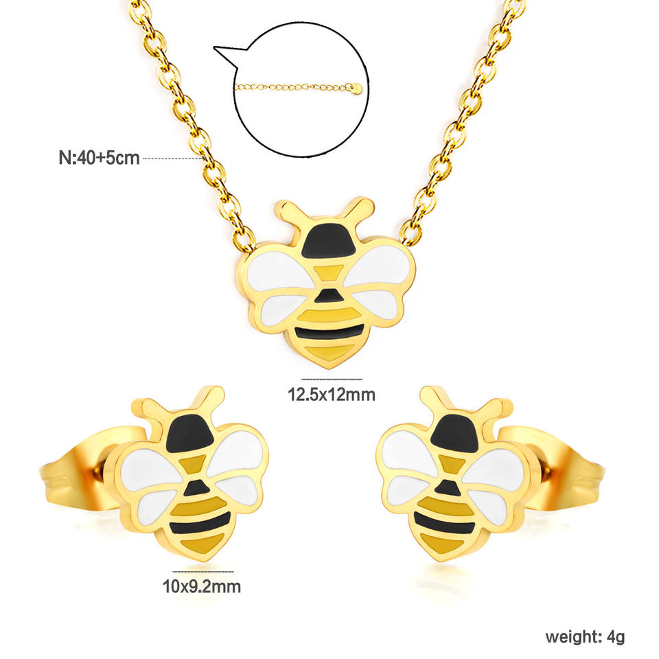 Ensemble de bijoux abeille plaqué or, collier et boucles d'oreilles avec pendentif insecte pour femmes, à porter au quotidien
