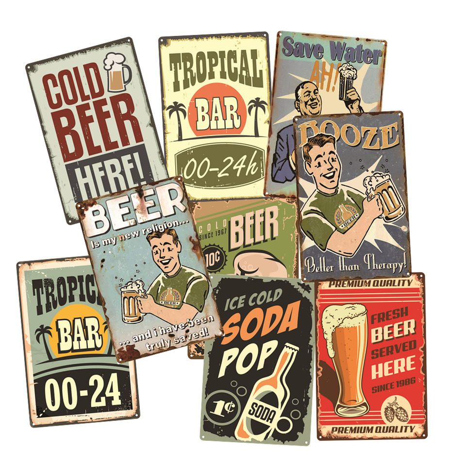 Signe de bière en métal, en étain, pour Cocktail, bière, décoration Vintage de Bar, affiche décorative murale de boisson glacée et froide