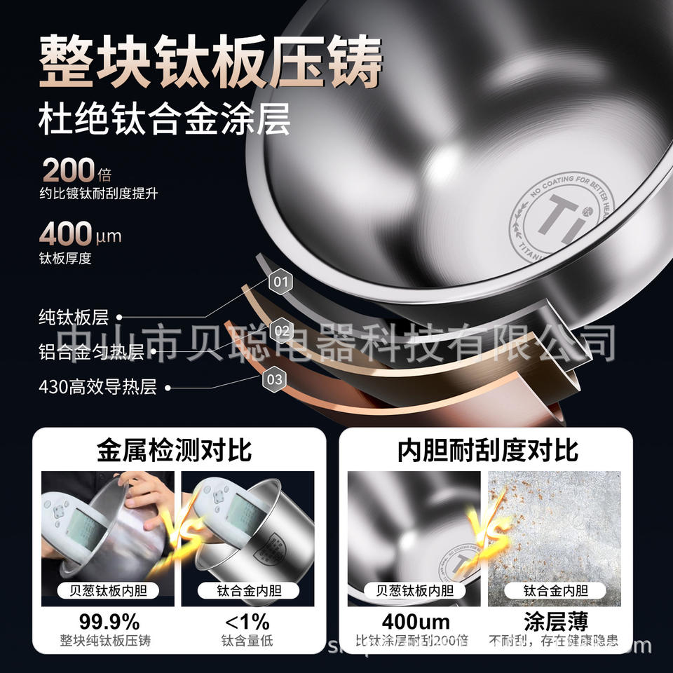 Cuiseur à riz Beicong Ih 3L avec revêtement en titane, multifonctionnel, électrique, avec contrôle par micro-ordinateur pour la cuisson et la séparation des soupes