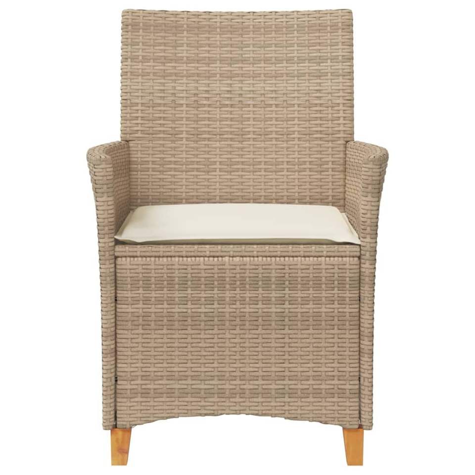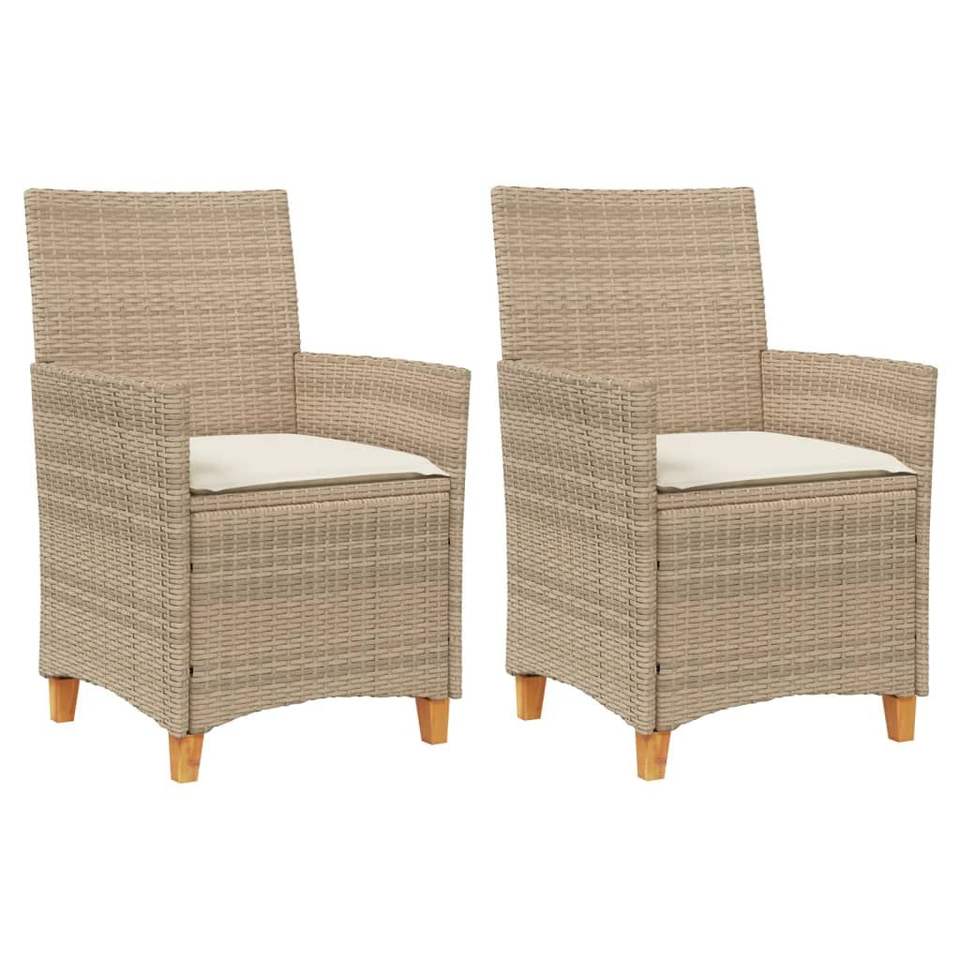 Ensemble de chaises de patio 2 pièces beige en poly rotin durable et bois massif avec coussins confortables