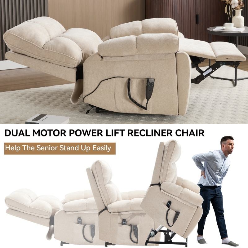 Fauteuil inclinable électrique beige en chenille robuste avec double moteur, positions infinies, massage chauffant et 8 points de vibration