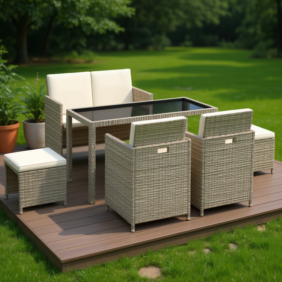 Beige Cream Rattan Garden Set 6 Seater Outdoor Patio Furniture Weather Resistant Contemporary Design