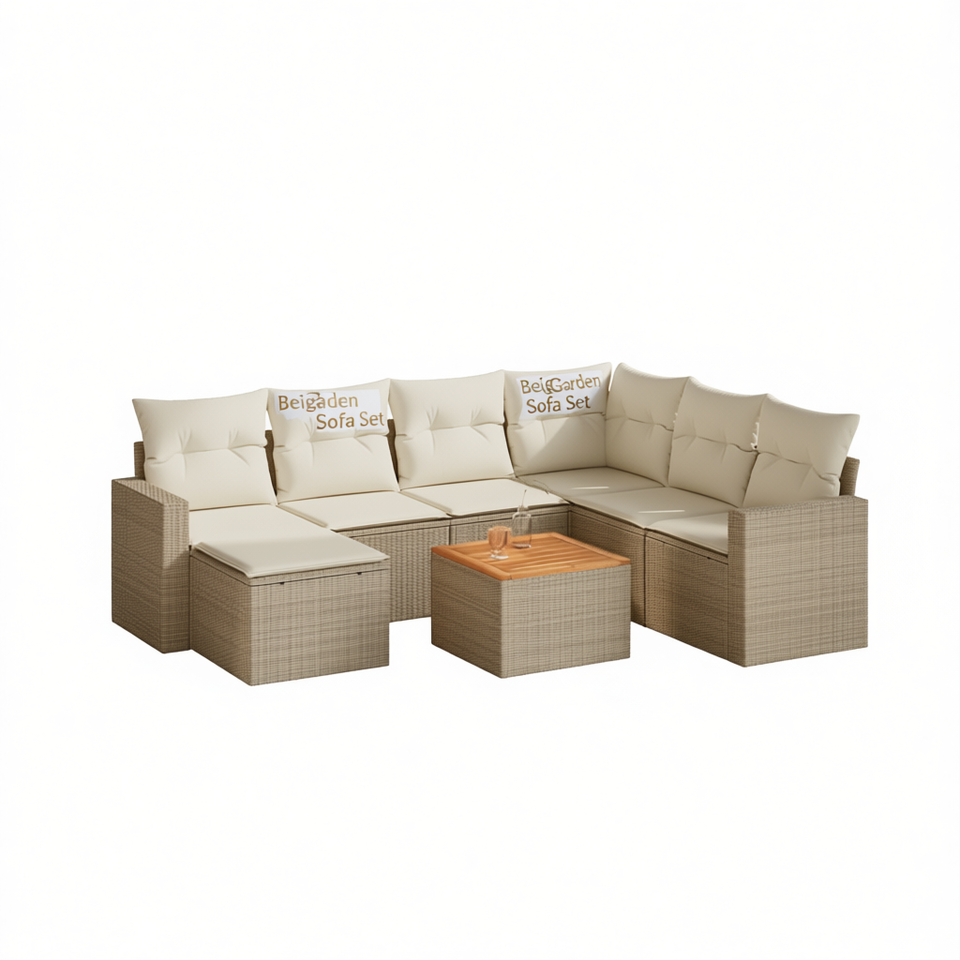 Ensemble de canapés de jardin beige, meubles en rotin d'extérieur avec coussins en mousse haute densité, design contemporain imperméable