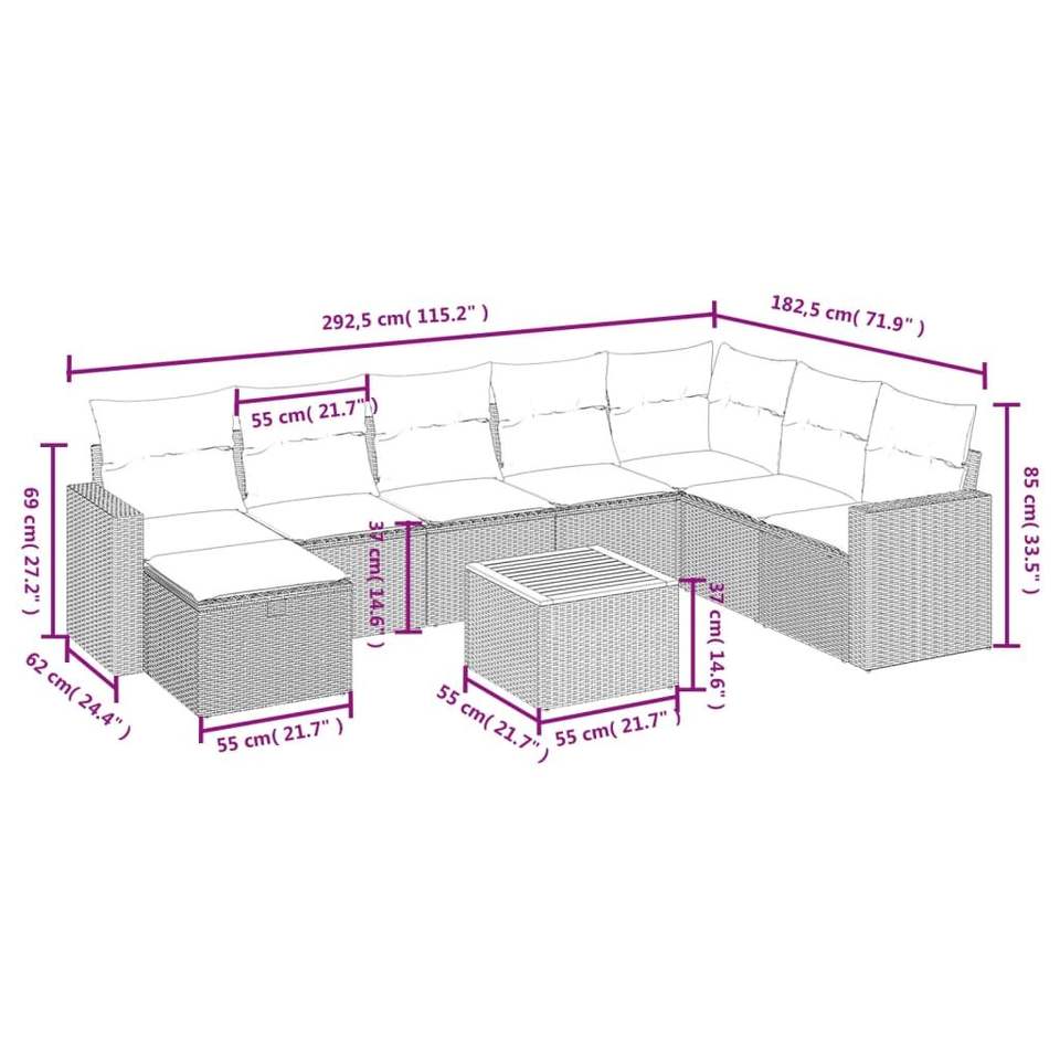 Ensemble de canapés de jardin en rotin beige avec rangement, mobilier d'extérieur 6 places, design contemporain
