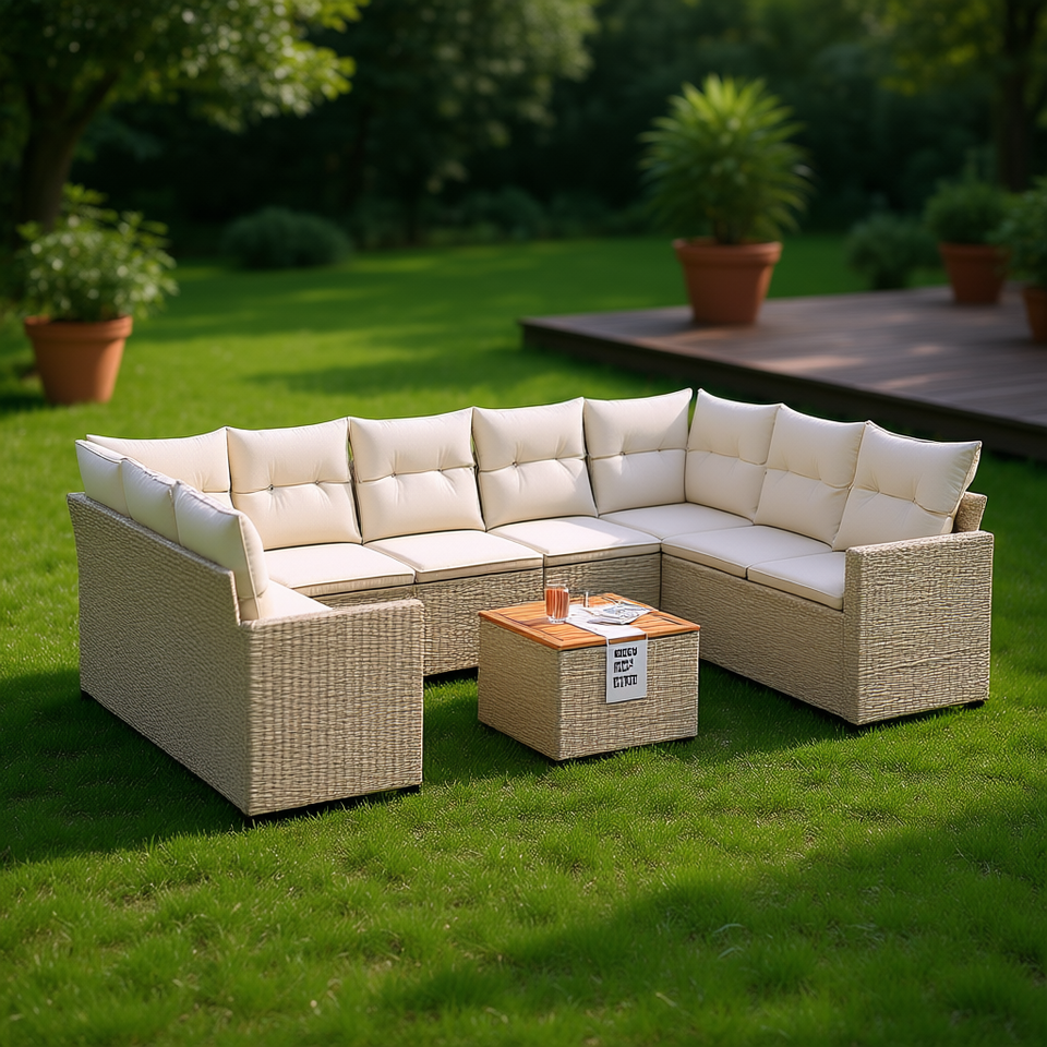 Ensemble de canapés de jardin en rotin beige 6 places, mobilier d'extérieur résistant aux intempéries, design contemporain