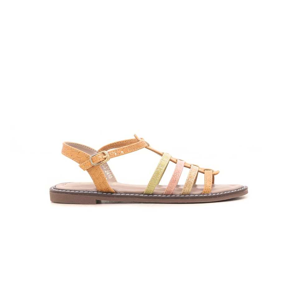 Beige Girls' Casual Sandal KD7536 Fashionable Summer Flat Outdoor Sandals Breathable and Lightweight with Rubber and PU Insole