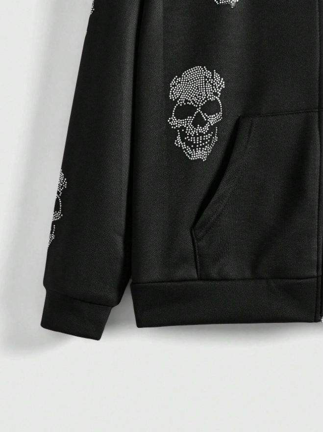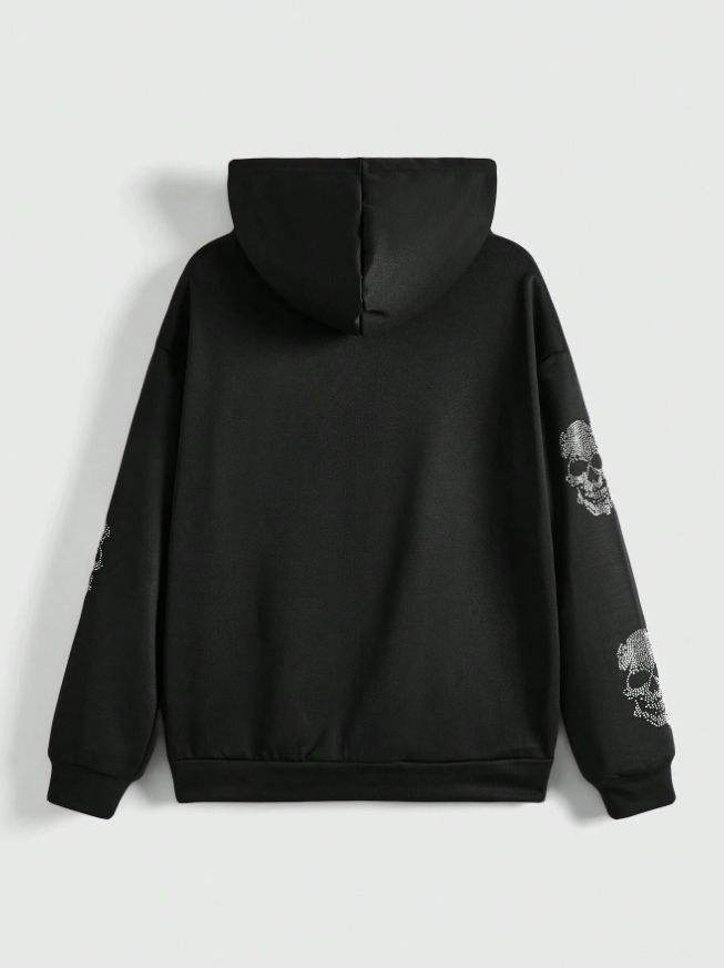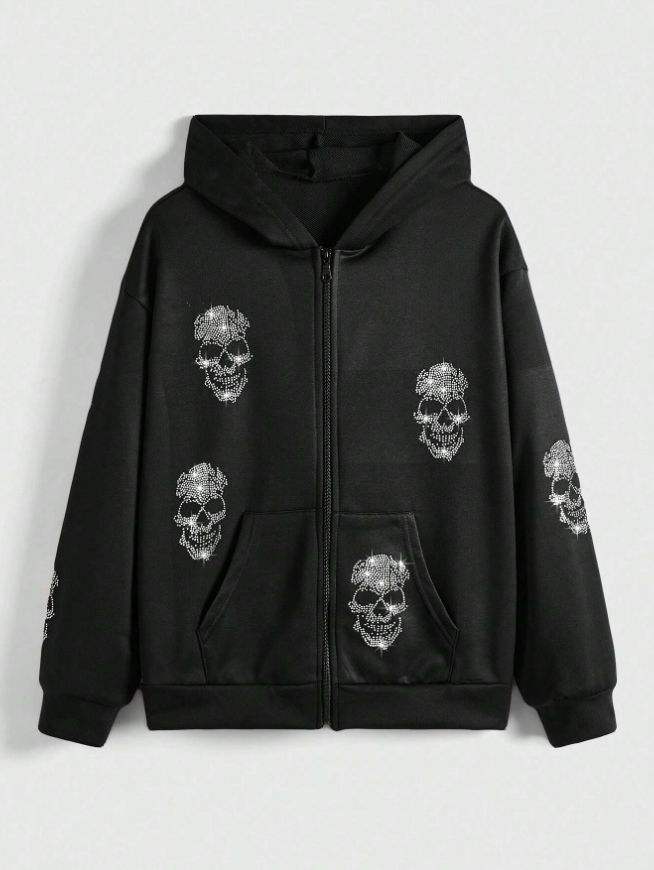 Men Street Zip Hoodie Black Gothic Skull Design Oversized Casual Hoodie Jacket Trendy Winter Wear