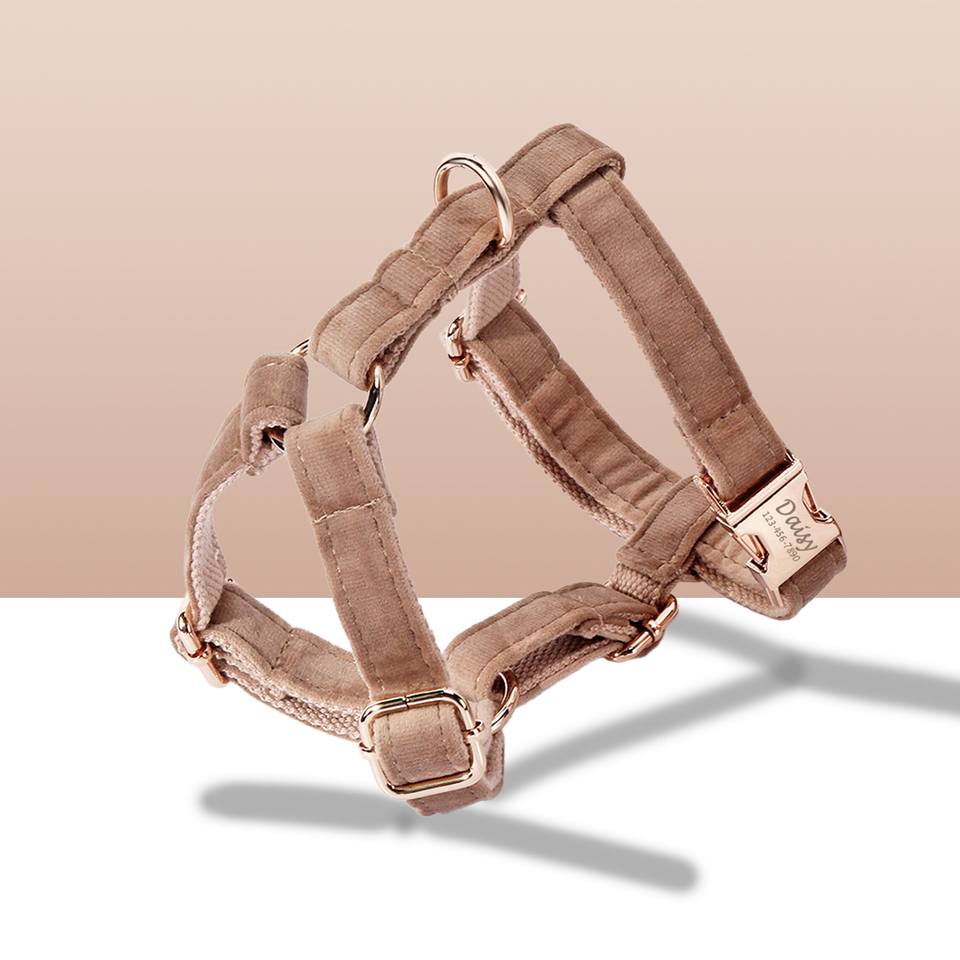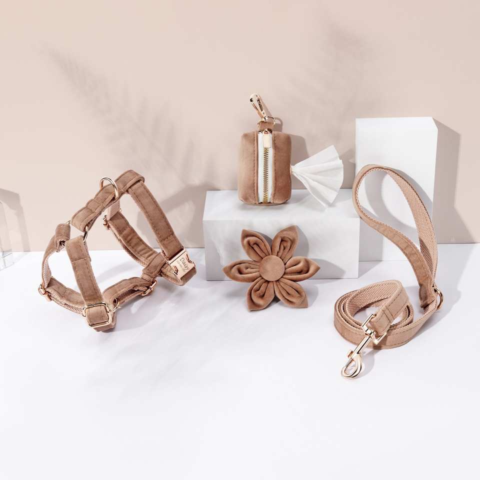 Ensemble harnais et laisse personnalisé beige gris, harnais anti-traction, porte-sac à crottes, cadeaux pour chiens