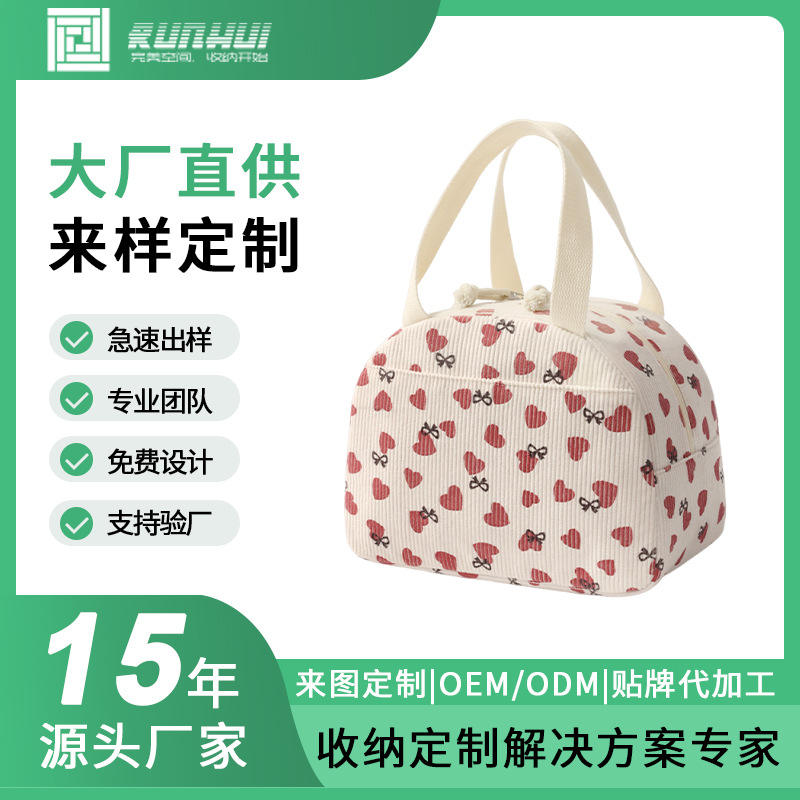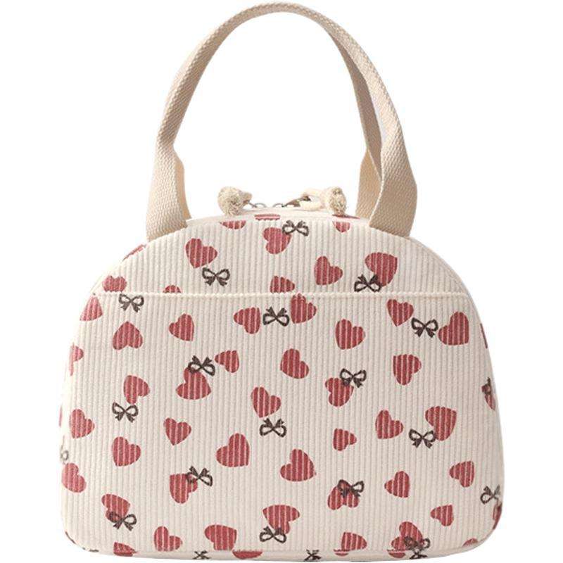Sac à lunch beige en forme de cœur, portable et isolé, pour le travail, l'école et les activités de plein air
