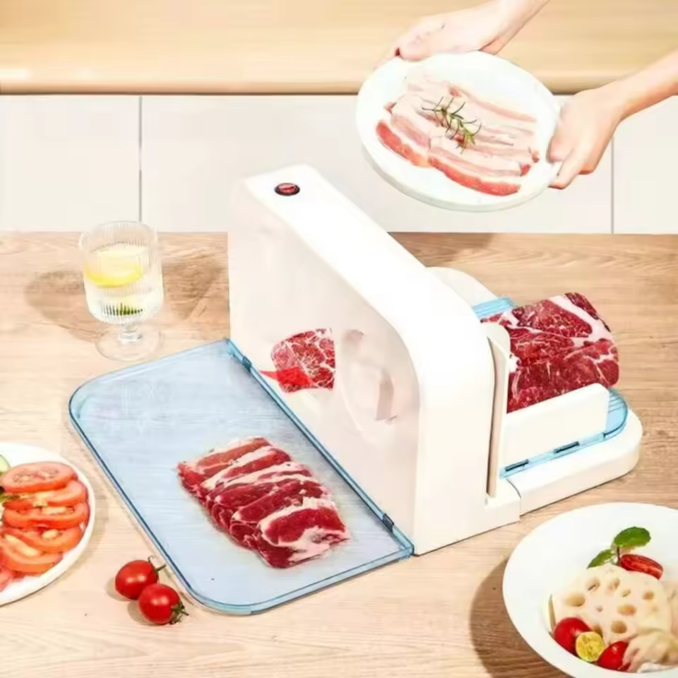 Hachoir Électrique Beige pour Viande et Légumes, Idéal pour Aliments Surgelés, Trancheuse Électrique Domestique