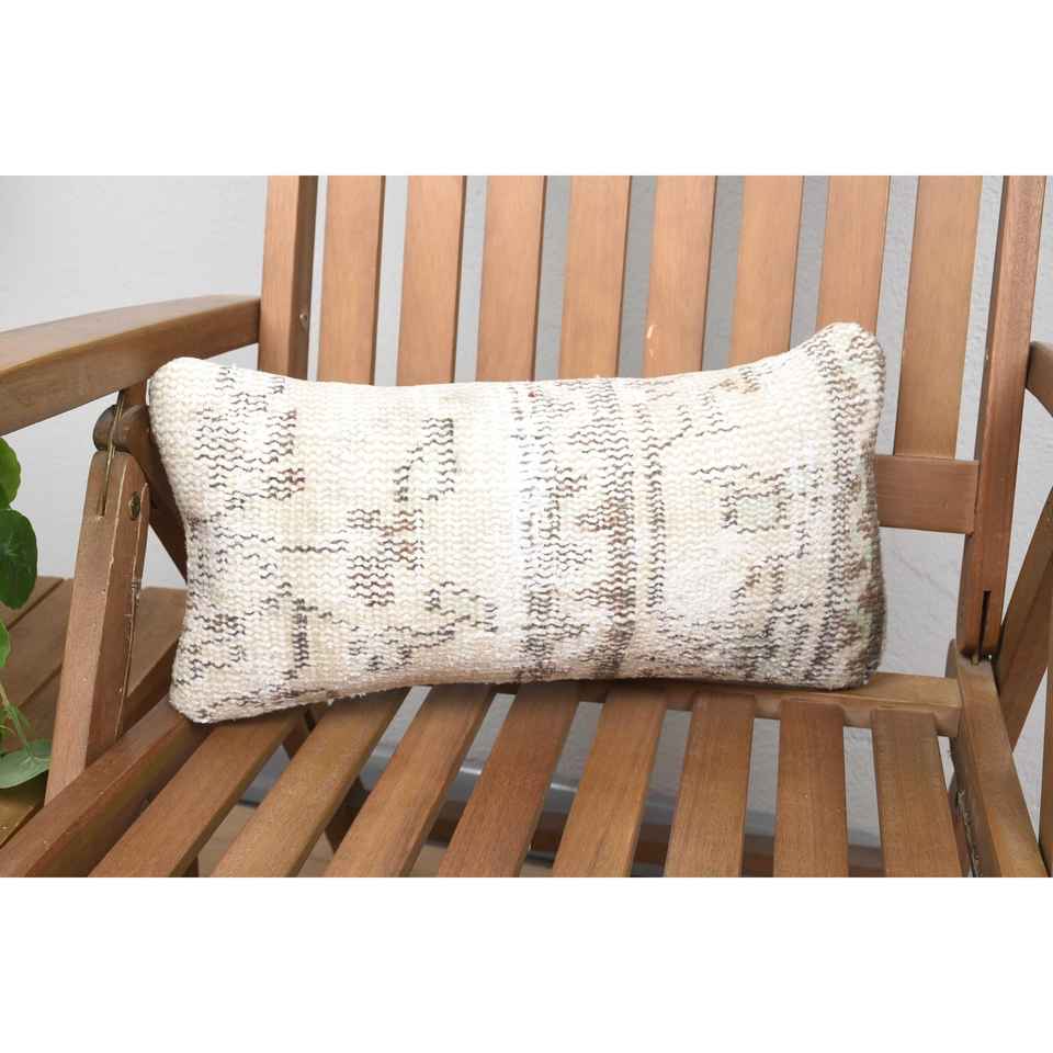 Oreiller en laine Kilim beige 8x16 pouces jeté floral moelleux rustique de luxe pour canapé tissé motif Vintage literie Portable