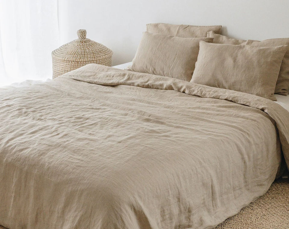 Housse de couette en lin beige, literie en lin lavé, housse de couette en lin naturel, ensemble de housse de couette en lin