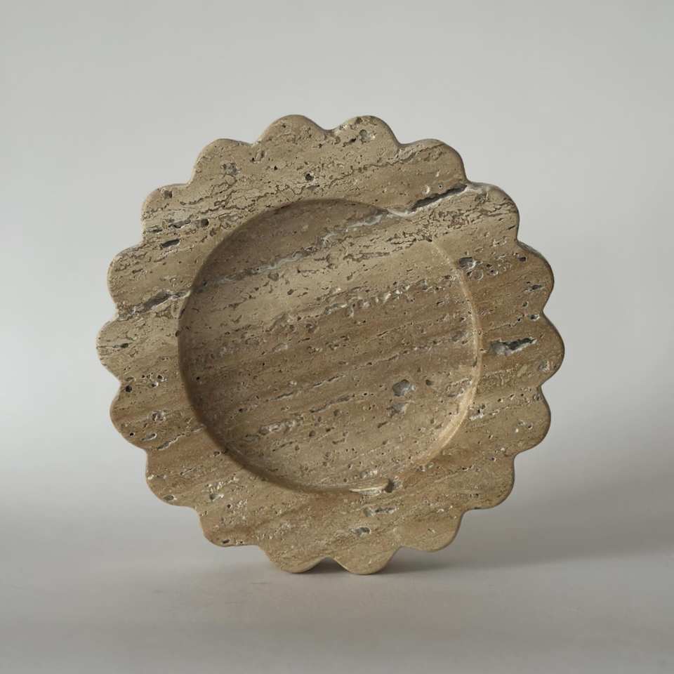 Plateau de service rond en marbre beige, festonné, fait main, moderne, résistant au feu, décoratif pour la cuisine, le salon, la villa, le revêtement mural