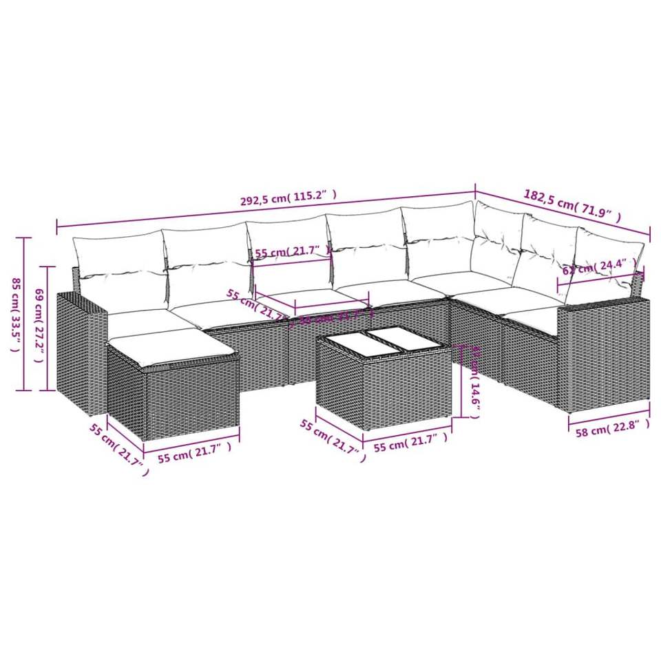 Ensemble de canapés de jardin en rotin PE beige avec structure en acier thermolaqué et verre trempé