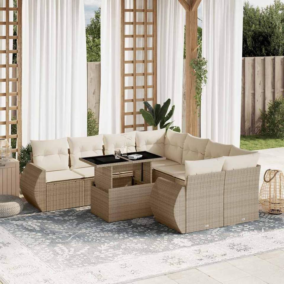 Ensemble de canapés de jardin en rotin PE beige avec structure en acier thermolaqué et verre trempé