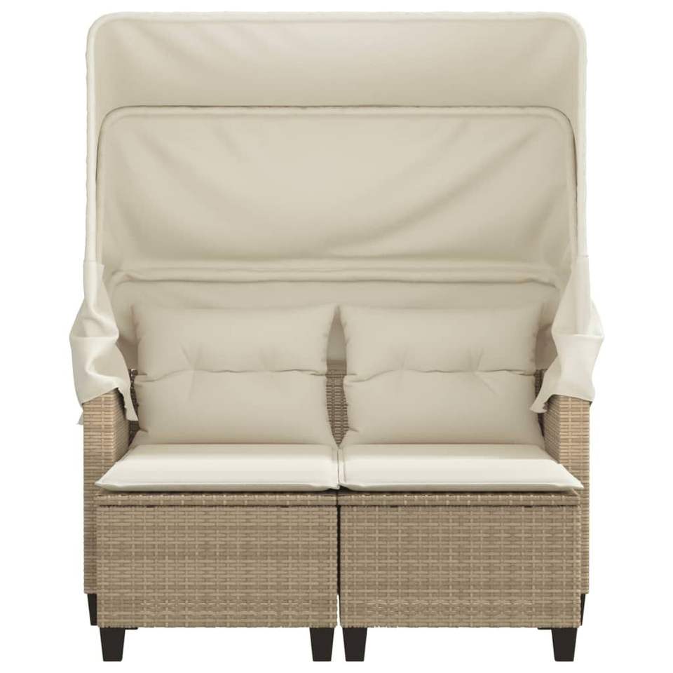 Canapé de jardin en rotin PE beige avec structure en acier thermolaqué et tissu en polyester, mobilier d'extérieur durable