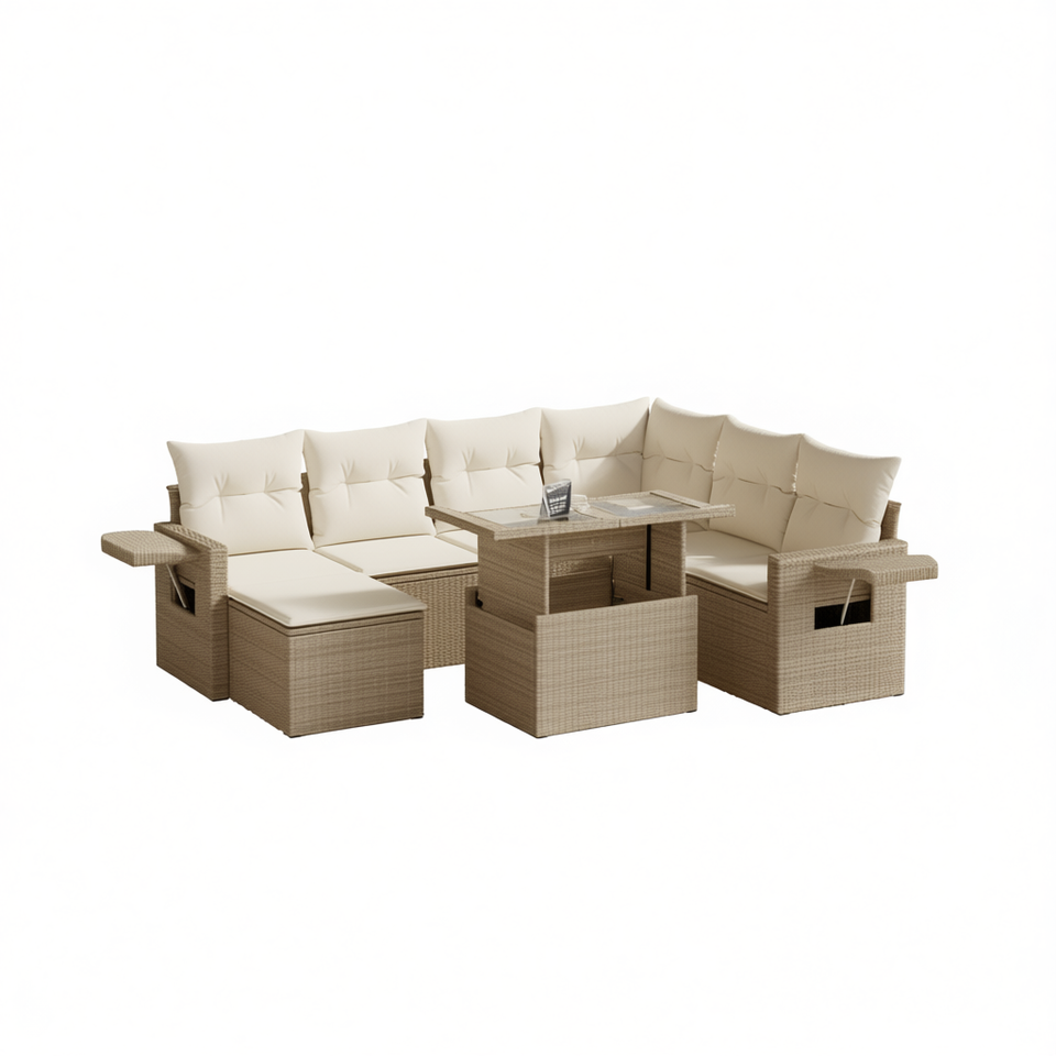 Ensemble de canapés de jardin en polyrotin beige avec accoudoirs réglables, 6 places, mobilier d'extérieur, design contemporain