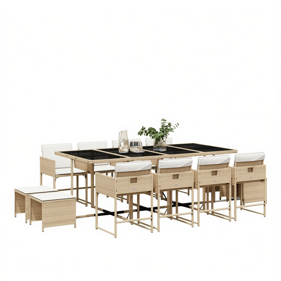 Ensemble de salle à manger de jardin en rotin beige 8 places, mobilier d'extérieur résistant aux intempéries, design contemporain, structure en métal