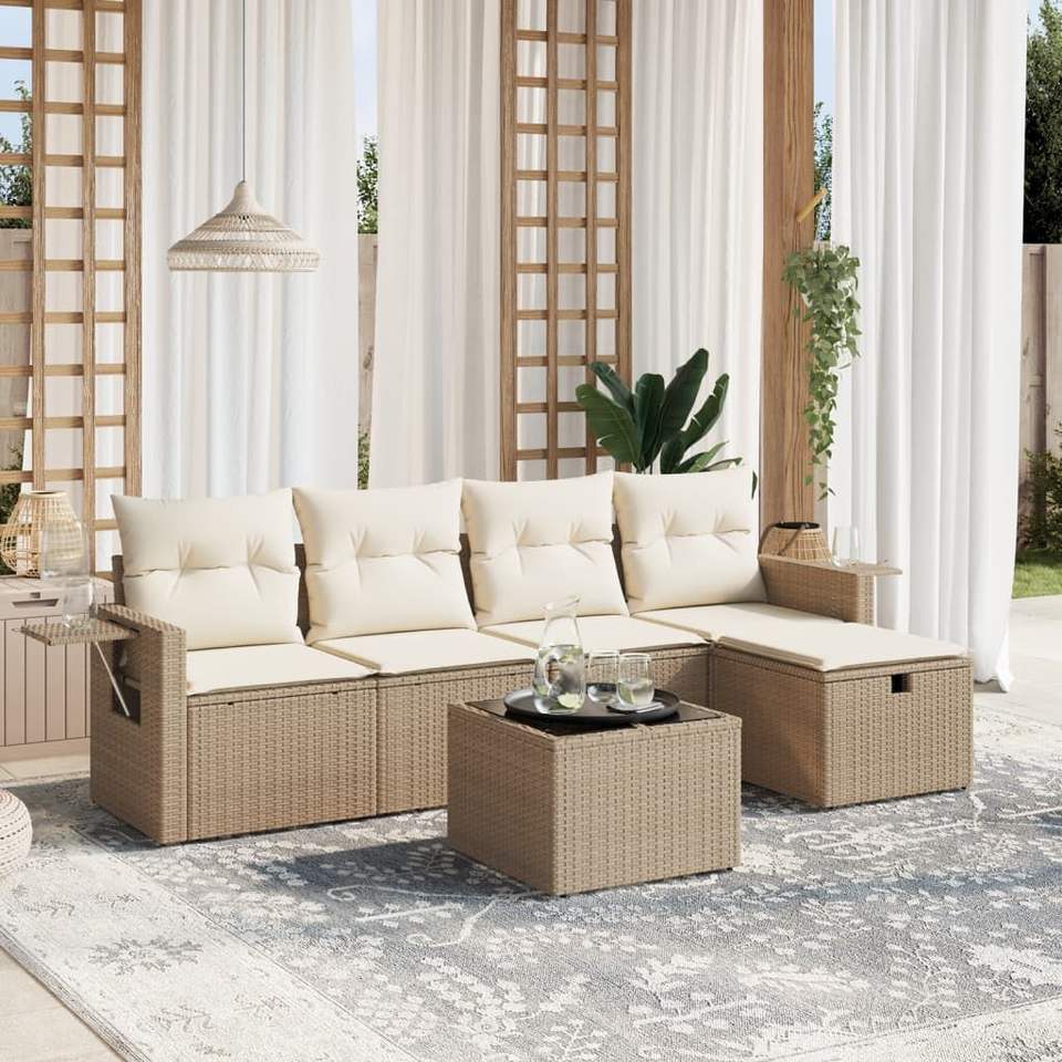 Ensemble de canapés de jardin en rotin beige 4 places, mobilier d'extérieur au design contemporain, structure en osier