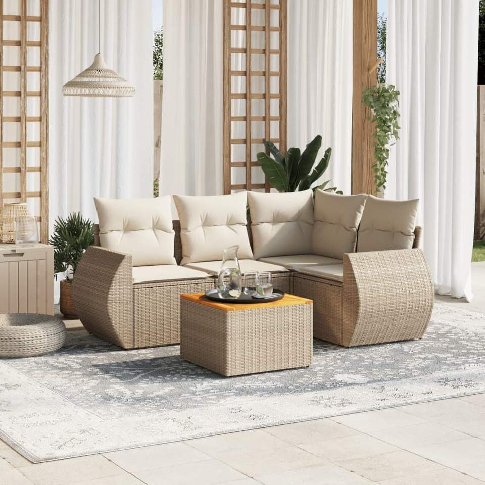 Ensemble de canapés de jardin en rotin beige 4 places, mobilier d'extérieur au design contemporain, structure en osier