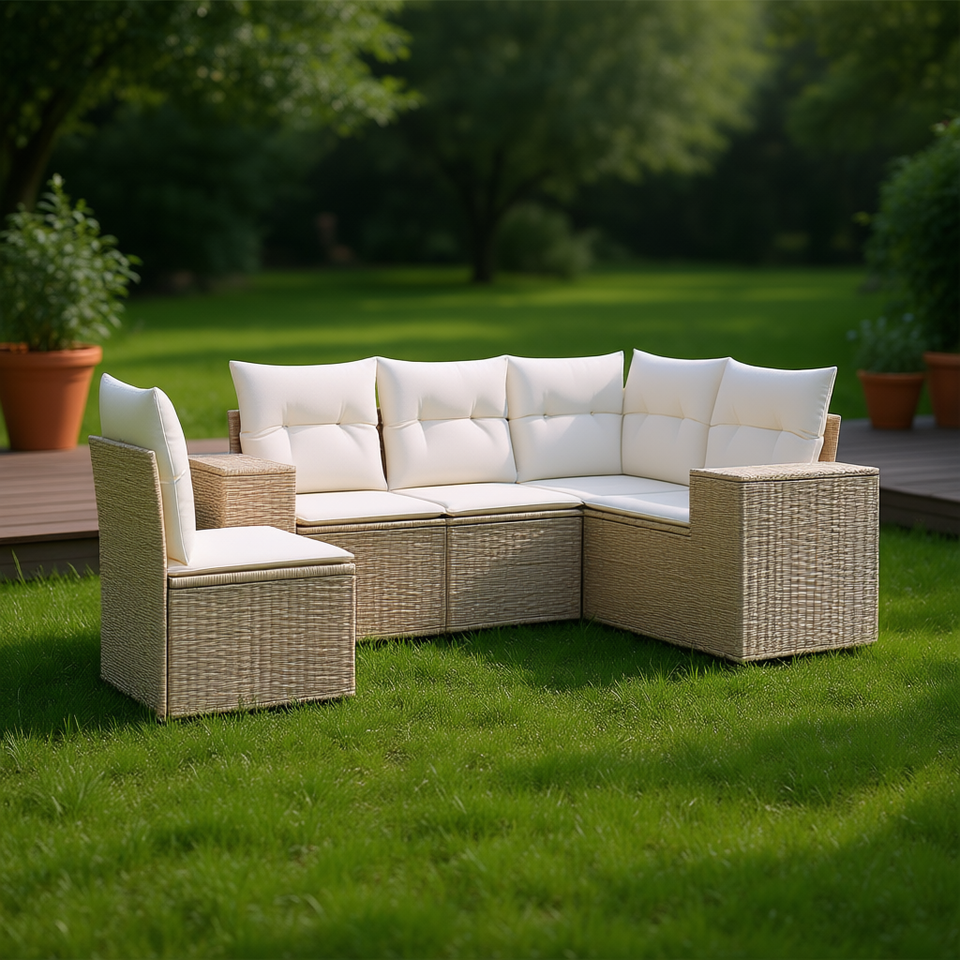 Ensemble de canapés de jardin en rotin beige 4 places, design contemporain pour l'extérieur