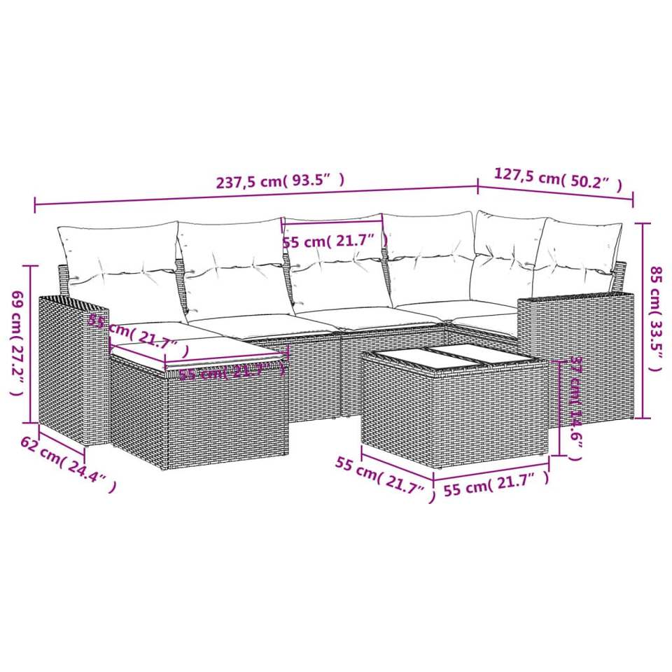 Ensemble de canapés de jardin en rotin beige 6 places, résistant aux intempéries, mobilier d'extérieur au design contemporain