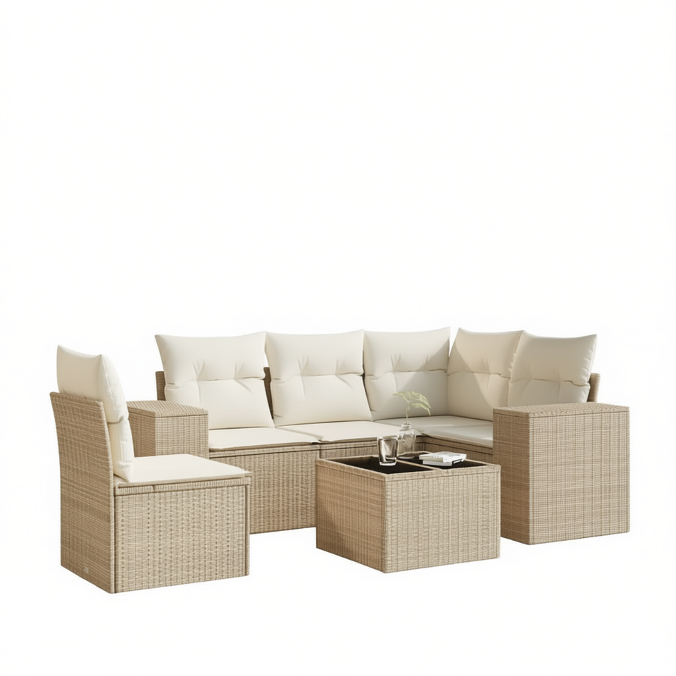 Ensemble de canapés de jardin en rotin beige avec coussins, mobilier d'extérieur au design contemporain, résistant à l'eau et aux UV, en osier PE