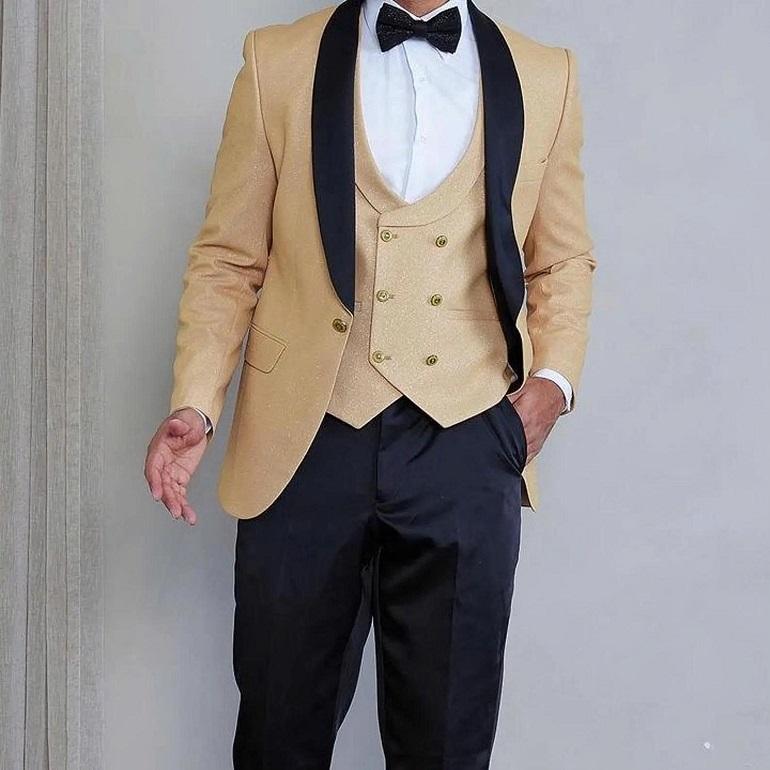 Ensemble de veste de smoking beige à paillettes avec finition scintillante en provenance du Vietnam