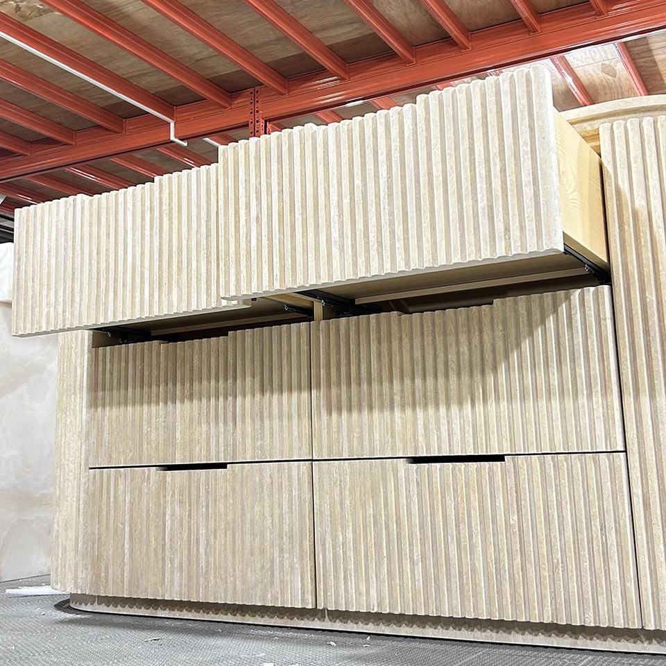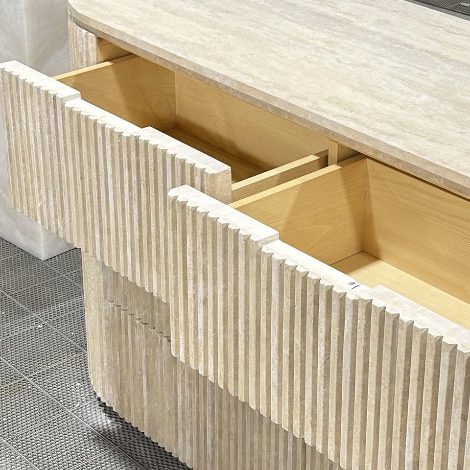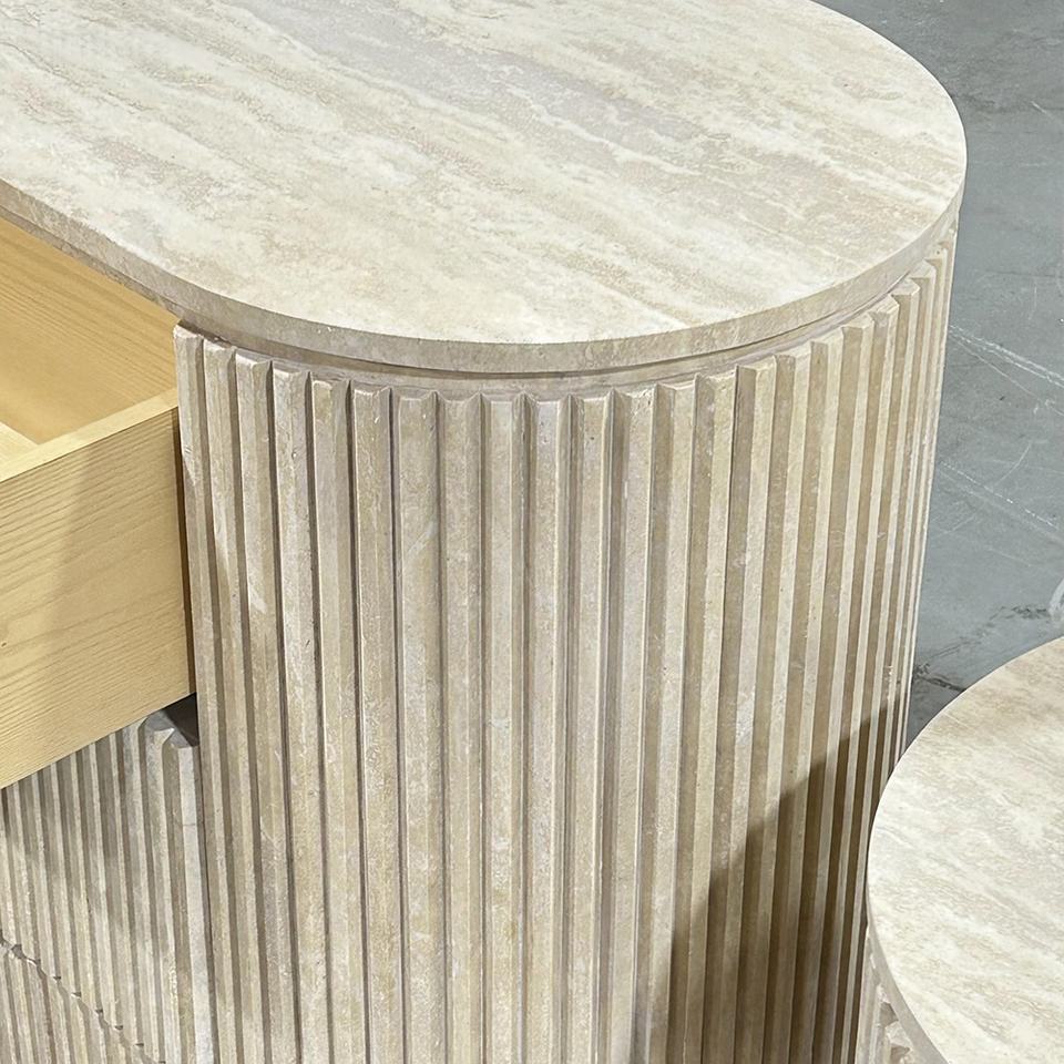 Table console en bois de travertin beige avec six tiroirs de rangement pour la maison salon meubles de Console en marbre entrée Hallwayc