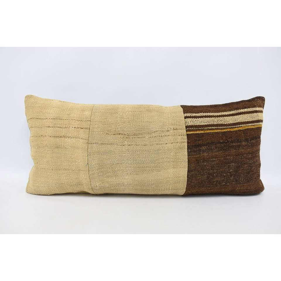 Oreiller en laine patchwork Kilim de style vintage beige 16x36 pouces Accent décoratif moelleux de luxe pour la literie ou les sols