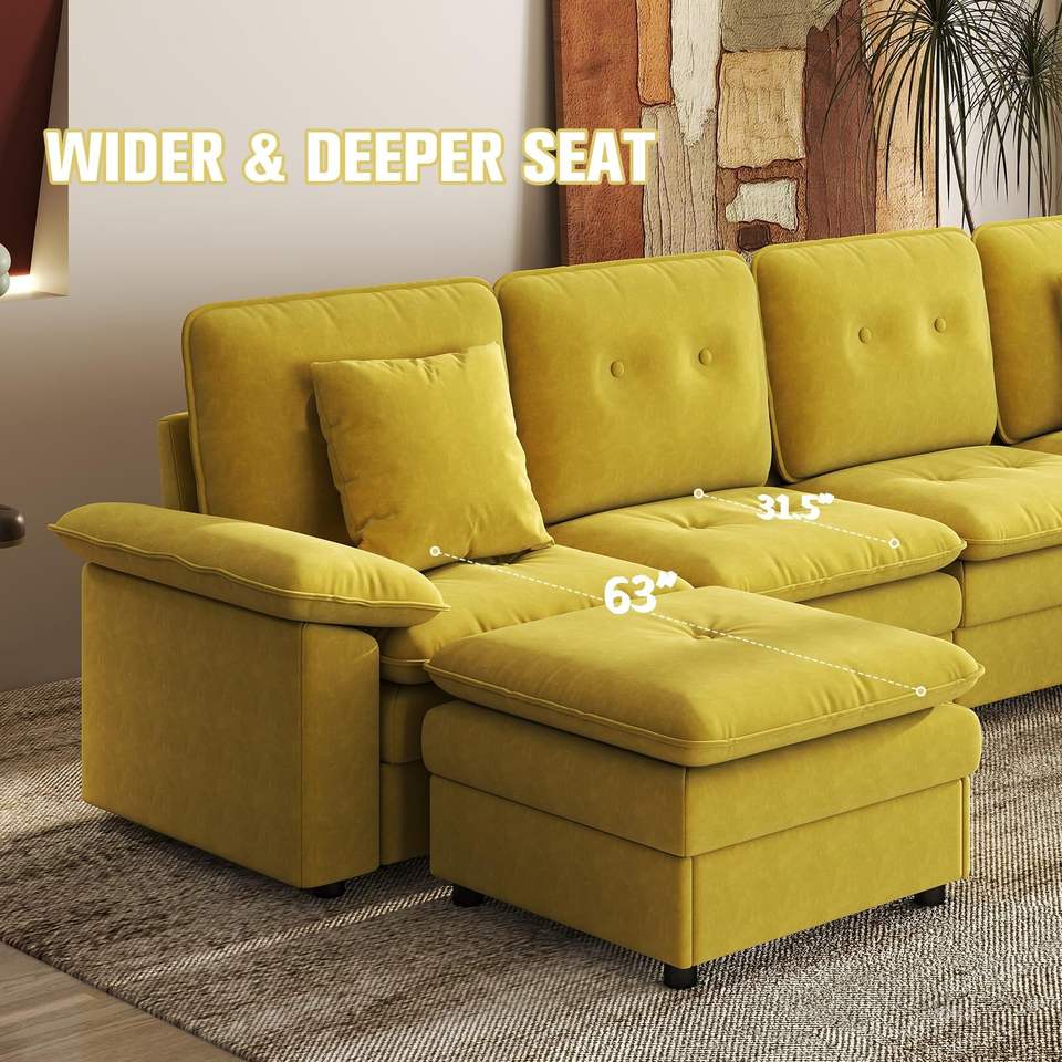 Canapé modulaire beige W PPL avec ottoman mobile, assise profonde confortable, canapé nuage pour salon, bureau, appartement