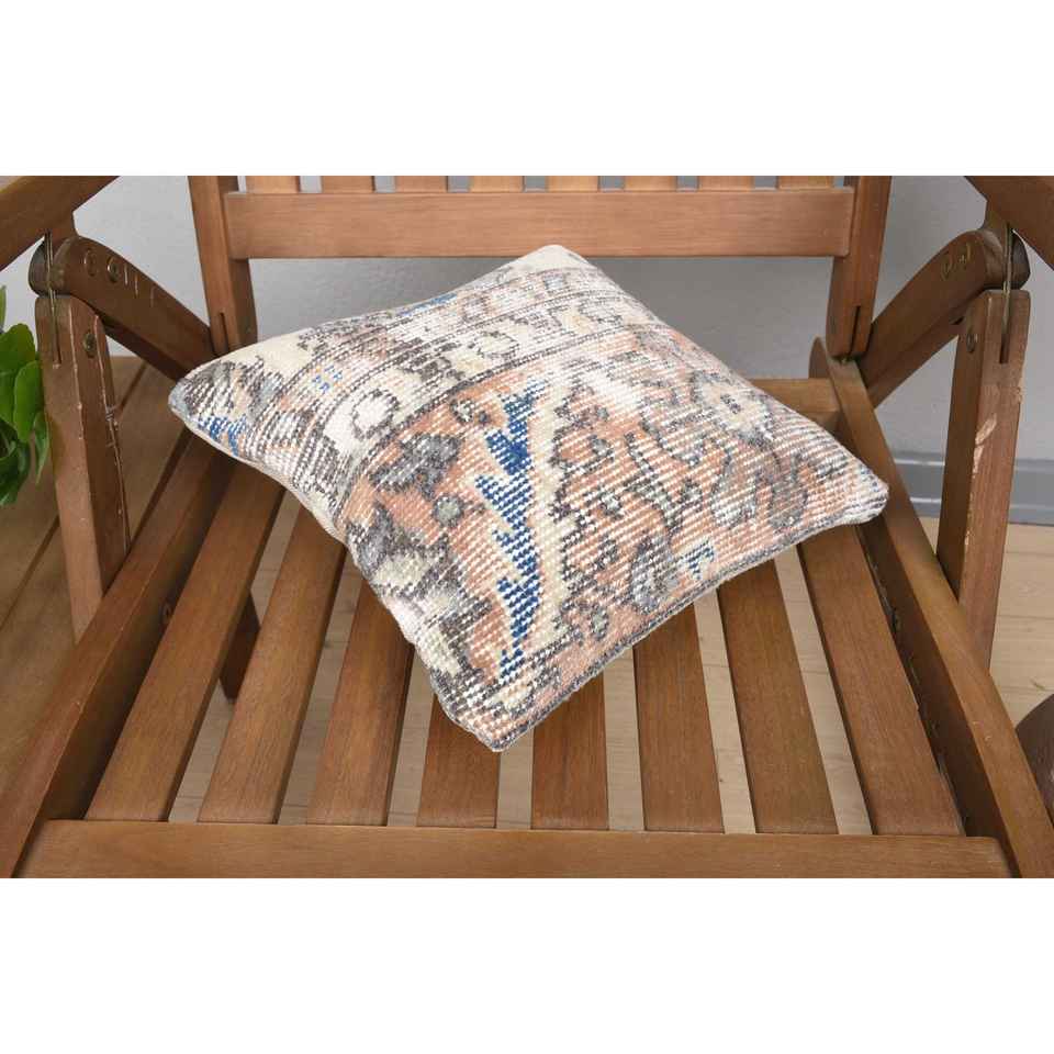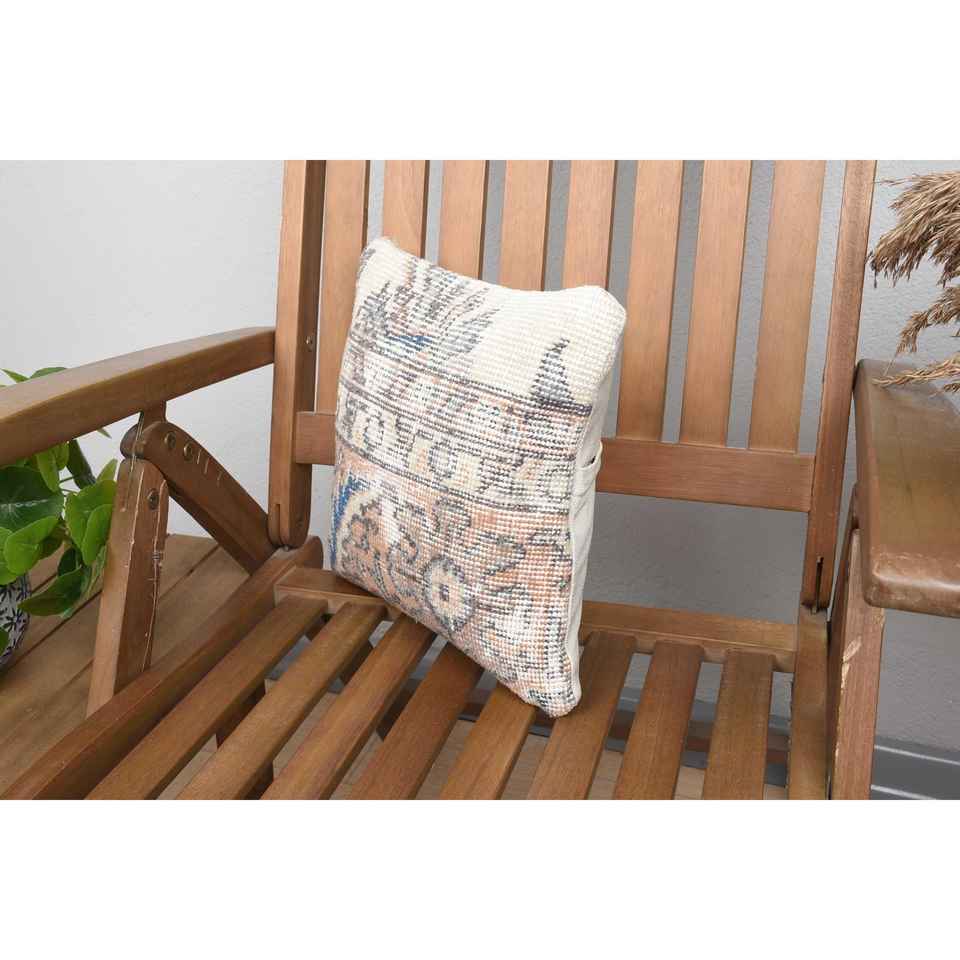 Oreiller patchwork Kantha en laine beige 12x12 pouces motif imprimé vintage brodé floral rustique pour une utilisation au sol pour Noël