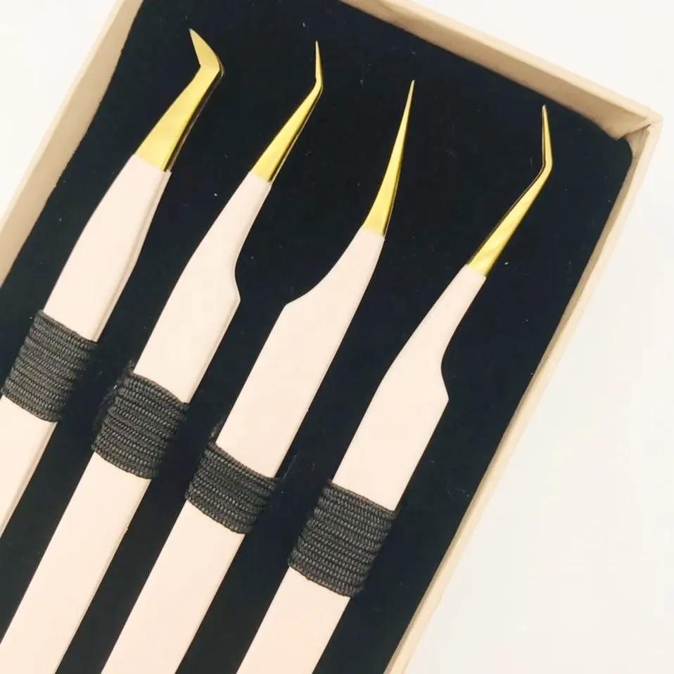 Couleur Beije enduit de pointes plaquées or pince à cils pince à épiler à étiquette personnalisée pince à cils professionnelle en acier inoxydable