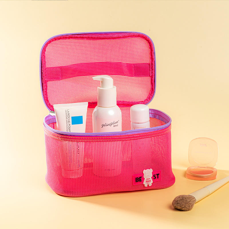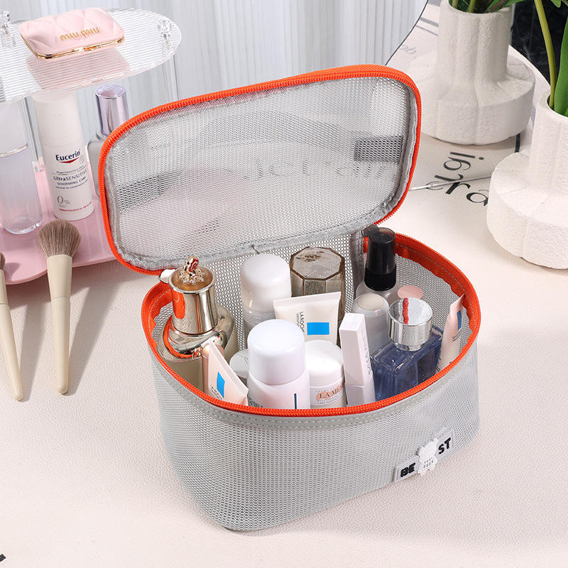 Sac de toilette en maille Beilian, grande capacité, trousse de toilette de voyage avec fermeture éclair et poignée, gris orange