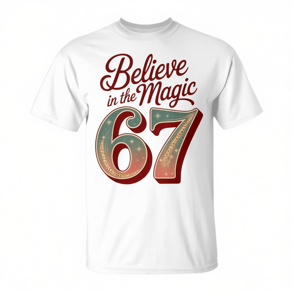 T-shirt de Noël « Believe In The Magic 67 » au design rétro