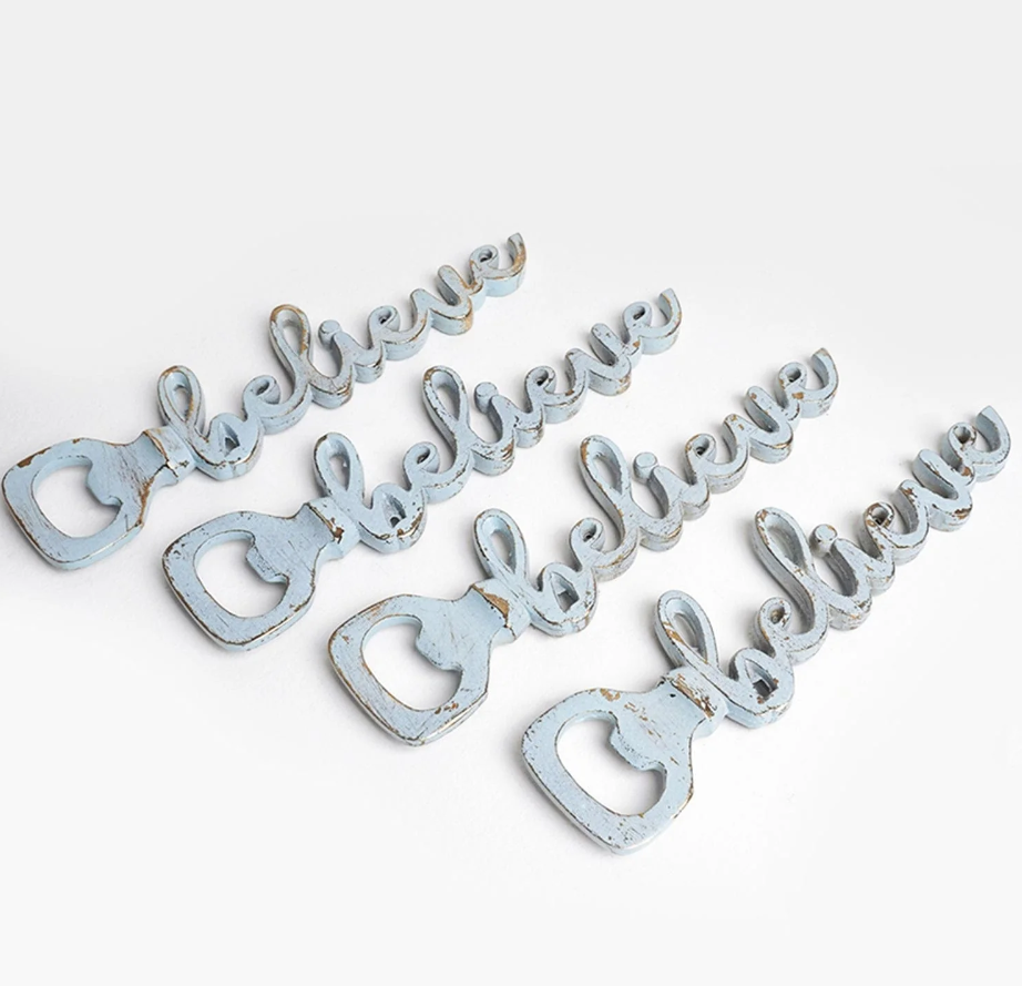 Believe Metal Blue Bottle OpenerProduct Name