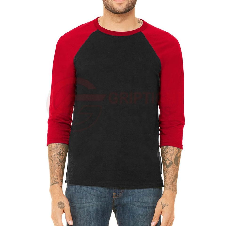 Bella + Canvas 3200 Logo personnalisé 2XL Plus Size Raglan Baseball T-Shirt Gris/Rouge Tri-Blend Jersey avec 3/4-Sleeve Casual Style