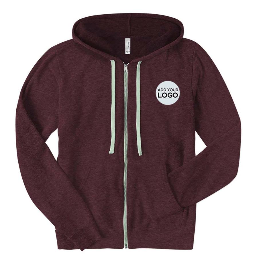Sweat à capuche unisexe Bella + Canvas, léger, à fermeture éclair intégrale, en tissu tri-blend