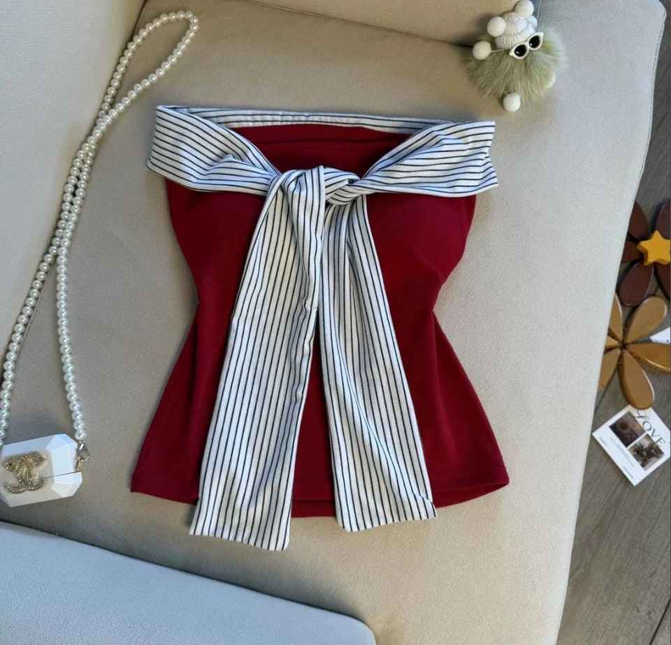 Belle Bow Tie-Up, Haut court moderne sans couture, style doux, tissé, avec soutien-gorge intégré, rouge, vente en gros