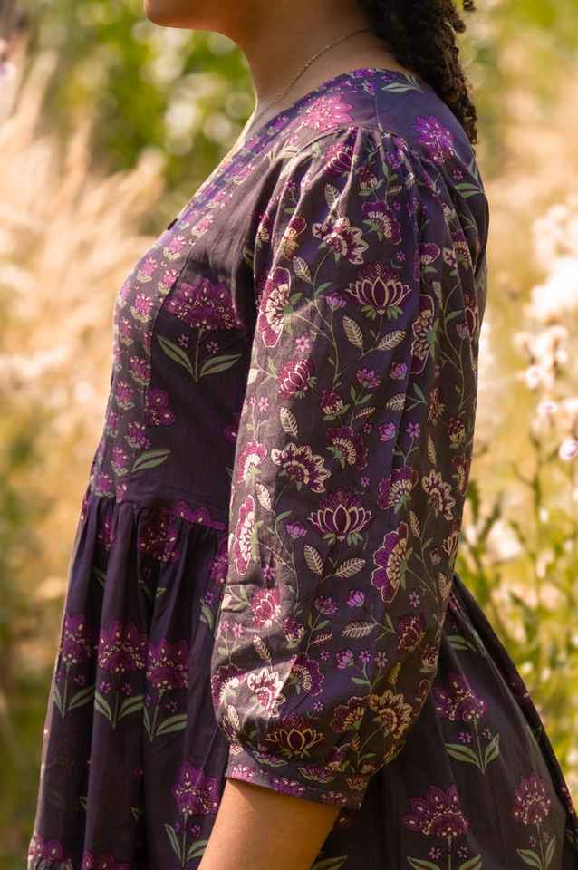 Belle Floral Boho Dress Handcrafted Purple Cotton Block Print Dress