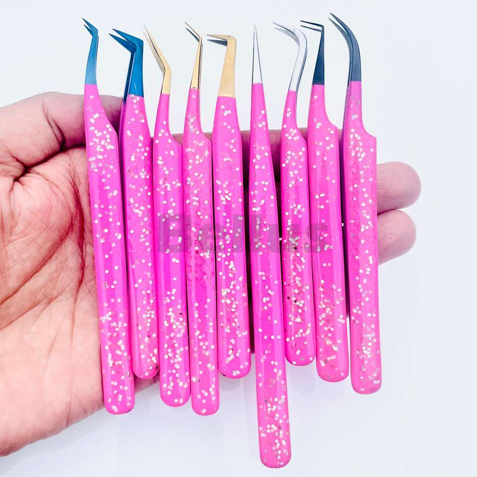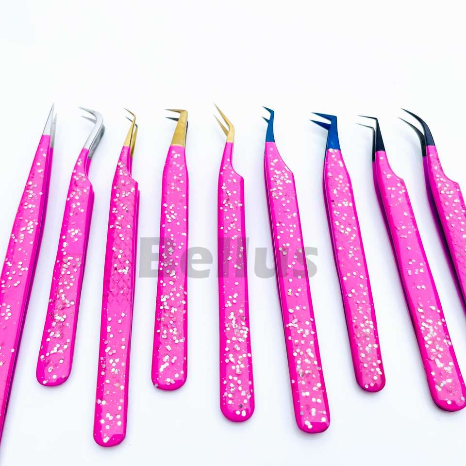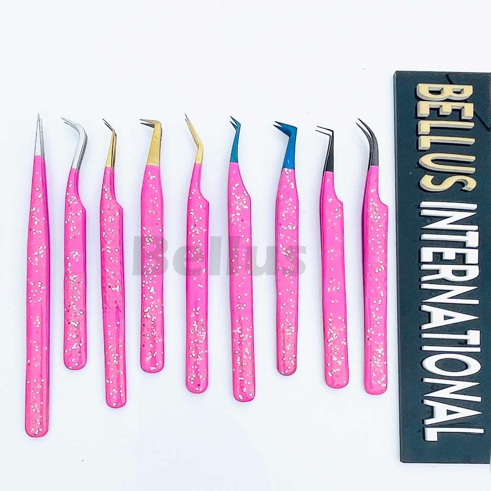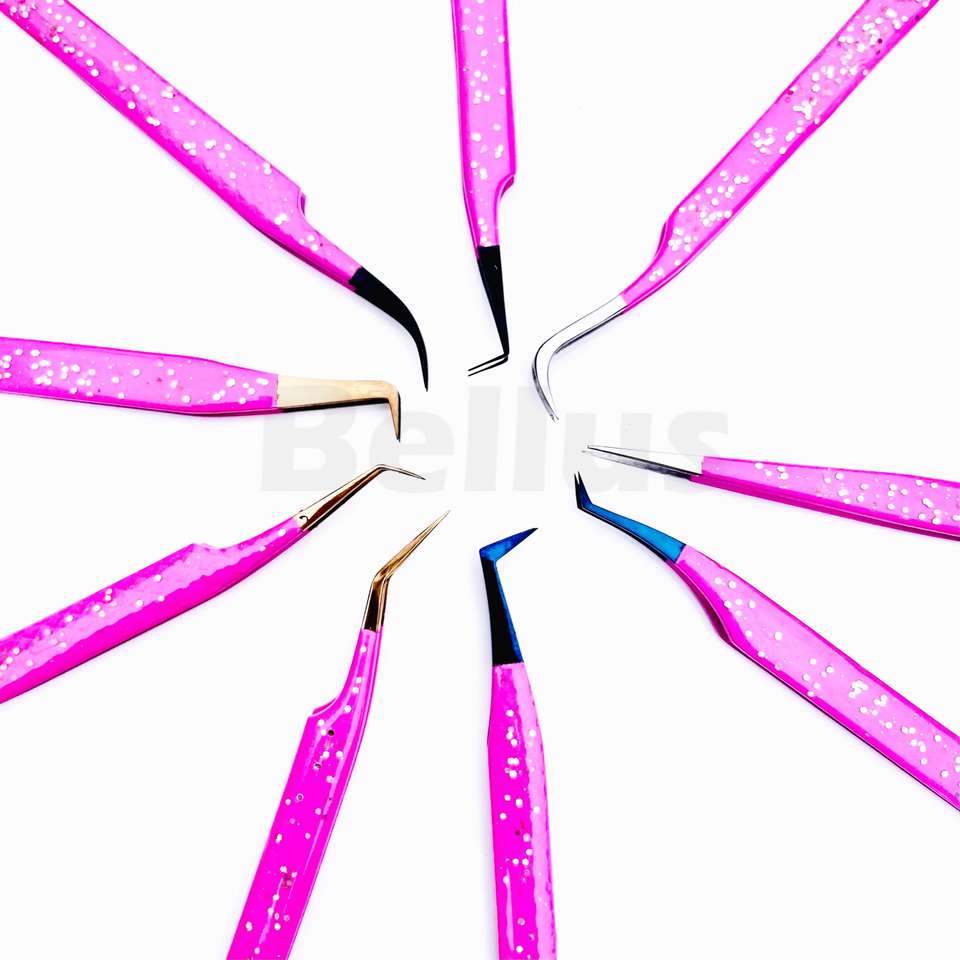 Bellus International Volume personnalisé 75 90 degrés droit mince outils d'extension de cils marque privée pince à cils à pointe en fibre