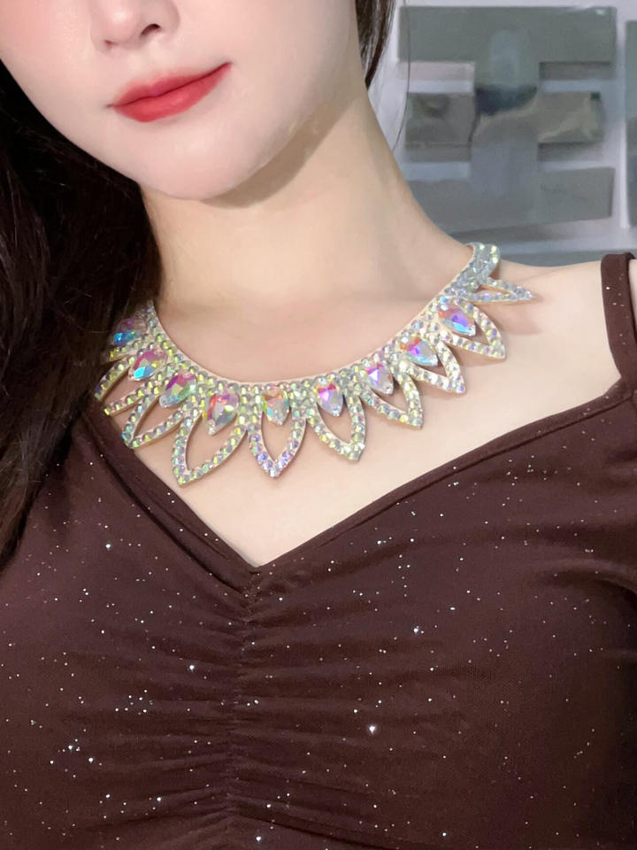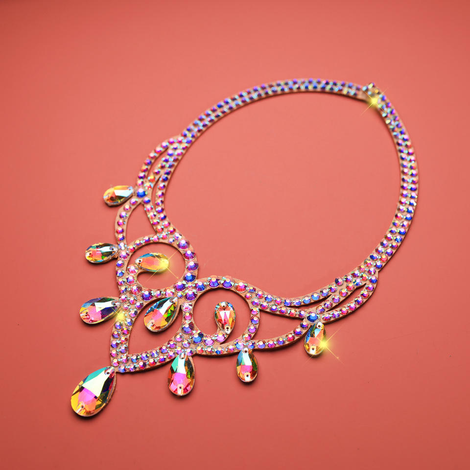 Collier de danse du ventre avec strass appliqués à la main, accessoire de costume de danse orientale pour spectacle