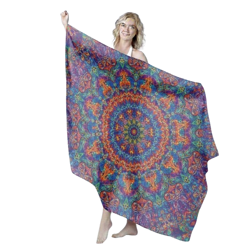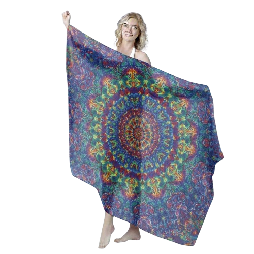 Voile de danse orientale - 100% soie pure, écharpe extra longue teinte à la main multicolore pour professionnels