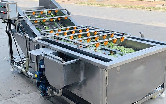 Laveuse à bande transporteuse avec trémie pour légumes et fruits, machine à laver à bulles avec sécheuse