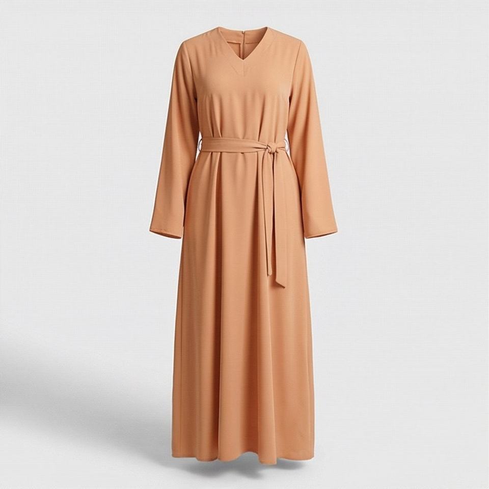 Nouvelle Collection : Abaya Longue à Manches Longues pour Femme, Style Ample, Couleur Personnalisable, avec Ceinture, Jilbab