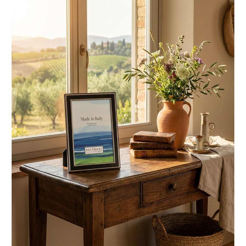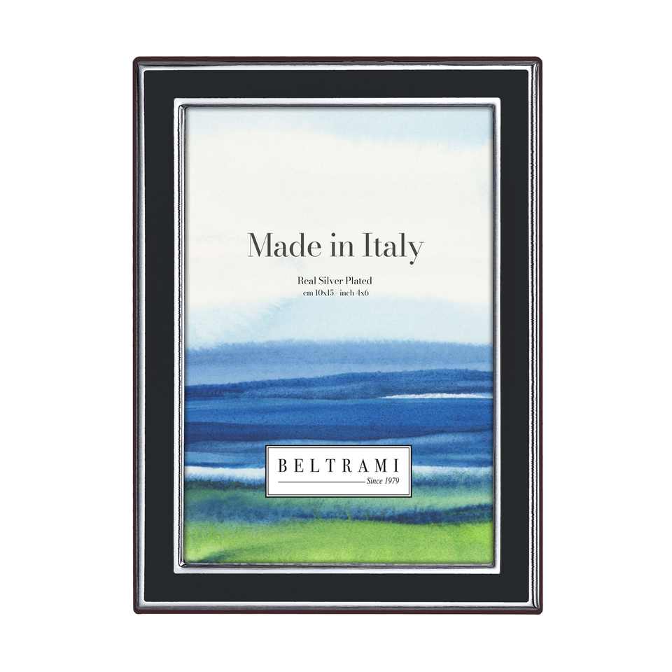 Cadre photo Beltrami 4x6 pouces plaqué argent fabriqué en Italie avec dos en bois