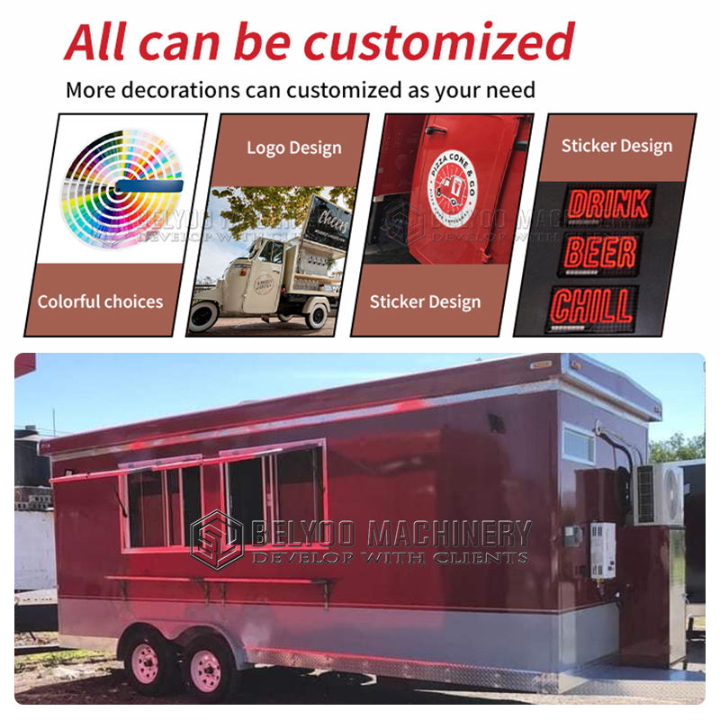 Belyoo certificat CE Mobile Fast Food Van Truck Chariots de café Remorque alimentaire à vendre Sandwiches au fromage