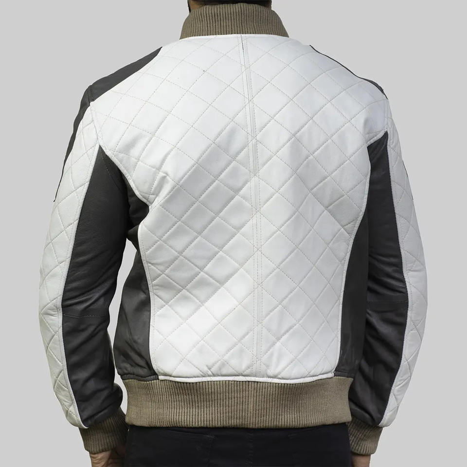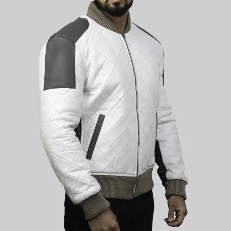 Blouson bomber matelassé Benjamin Classic – Blouson matelassé en cuir véritable pour homme avec poignets en tricot côtelé et plusieurs poches